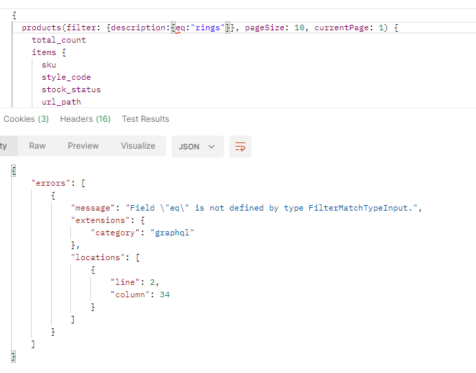 In the case of description, we dont have the keyword mapping which means we cannot use the eq operator