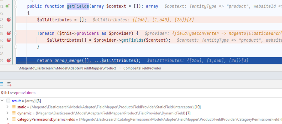 - \Magento\Elasticsearch\Model\Adapter\FieldMapper\Product\CompositeFieldProvider::getFields