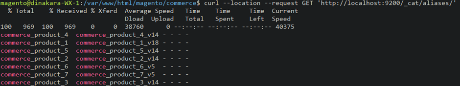 - Once all the data is pushed to this new indices, This new indices will be set as the primary indices and the old one commerce_product_1_v16 will get removed.