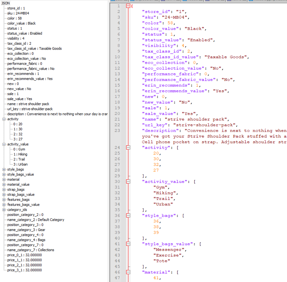 The Elasticsearch Index pattern “commerce_product_1_v15” contains the below parts