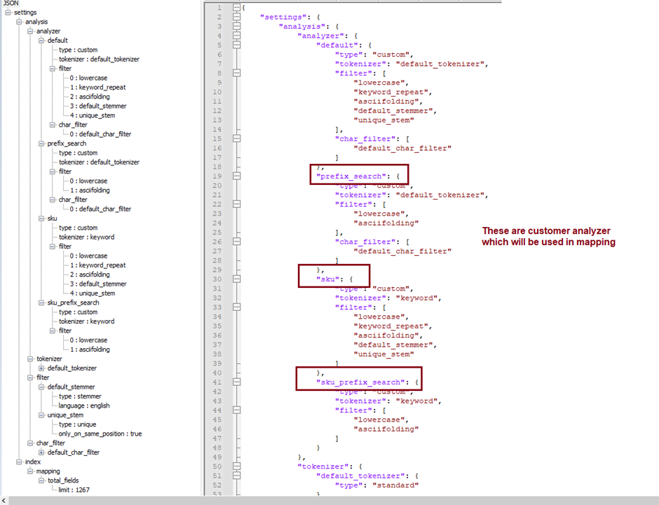 While creating the index, Index level settings is also set such as filter setting, analyser, mapping fields count etc.